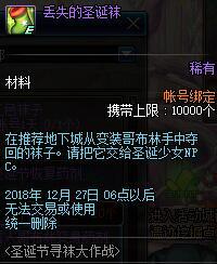 活动期间通过推荐地下城收集丢失的圣诞袜,可在NPC处兑换奖励。: