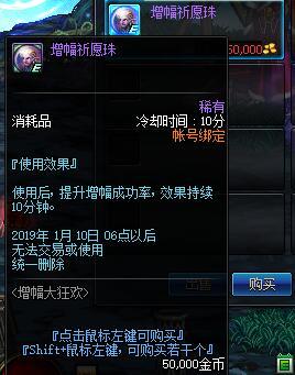 特定时间内可获得增幅Buff,活动期间登陆可获得1个增幅祈愿珠,在克伦特商店内也可消耗金币购买增幅祈愿珠