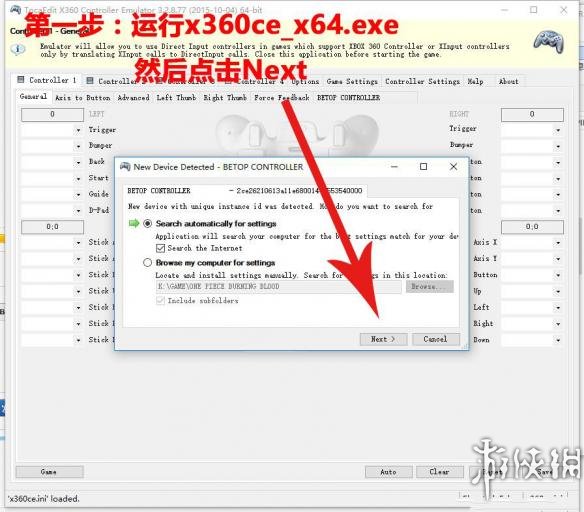 海贼王:燃血 普通手柄模拟360操作补丁[64位版];北通C036亲测可用,其他杂牌手柄未知。如果不能使用尝试以下方法(不要拔掉手柄)。