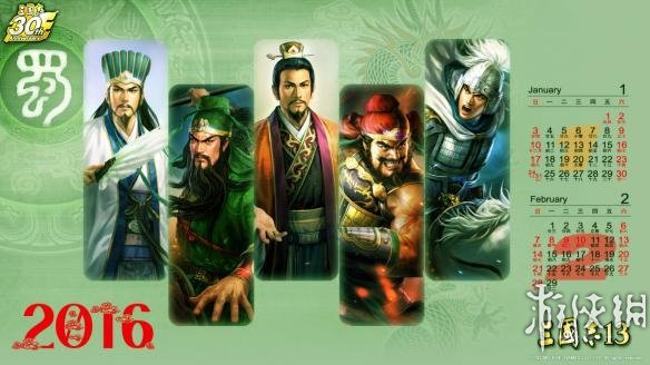 三国志13 玩家自制2016年日历壁纸;由 秋天远去 原创分享,全套一共有8张,喜欢的朋友不要错过。