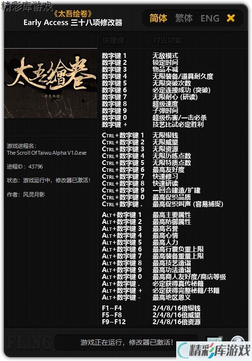 点击简体、繁体、English,可以切换语言 (切换语言后修改器将把该语言设置为默认语言)