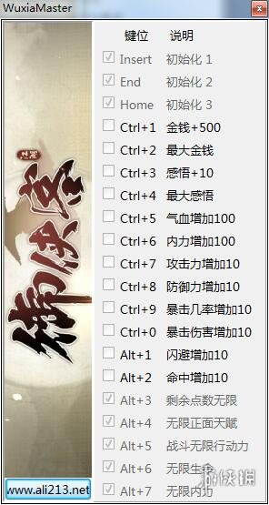 1.属性,金钱,感悟修改,需开启初始化。初始化开启方法,首先进入角色武功界面按照顺序依次开启初始化1-初始化2-初始化3。重新进入角色武功界面修改。