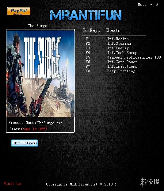 F1 > 无限生命F2 > 无限耐力F3 > 无限能量F4 > 无限科技废料F5 > 武器技能100F6 > 无限核心能量F7 > 无限针剂F8 > 容易打造