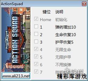 键位功能介绍:Home - 初始化1 - 弹药增加102 - 生命恢复103 - 护甲恢复54 - 无限生命5 - 无限护甲6 - 不用换弹7 - 技能射击无冷却