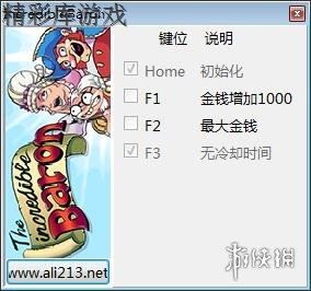 键位功能介绍:Home - 初始化F1 - 金钱增加1000F2 - 最大金钱F3 - 无冷却时间