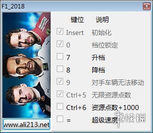 键位功能介绍:Insert - 初始化0 - 档位锁定7 - 升档8 - 降挡9 - 对手车辆无法移动Ctrl+5 - 无限资源点数Ctrl+6 - 资源点数+1000= - 超级速度