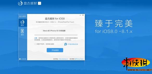 详细一键越狱教程请点击:http://www.ali213.net/news/html/2014-10/120167.html