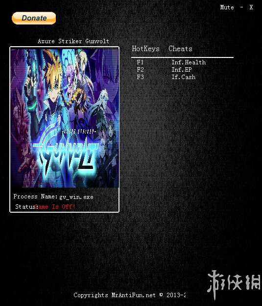 苍穹雷霆Gunvolt v1.0三项修改器MrAntiFun版;有修改无限生命等三项功能,让你轻松超神,给你全新体验。