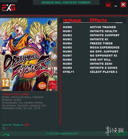 Home 激活修改器数字键1 无限生命数字键2 无限支援数字键3 无限KI 数字键4 冻结时间数字键5 无限经验数字键6 对手无支援数字键7 对手没有KI数字键8 一击必杀数字键9 无限ZEIN数字键0 无限Z币CTRL+1 换成玩家2