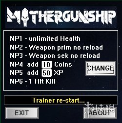 Num1 无限生命Num2 主武器无需填弹Num3 副武器无需填弹Num4 +10币Num5 +50经验Num6 一击必杀
