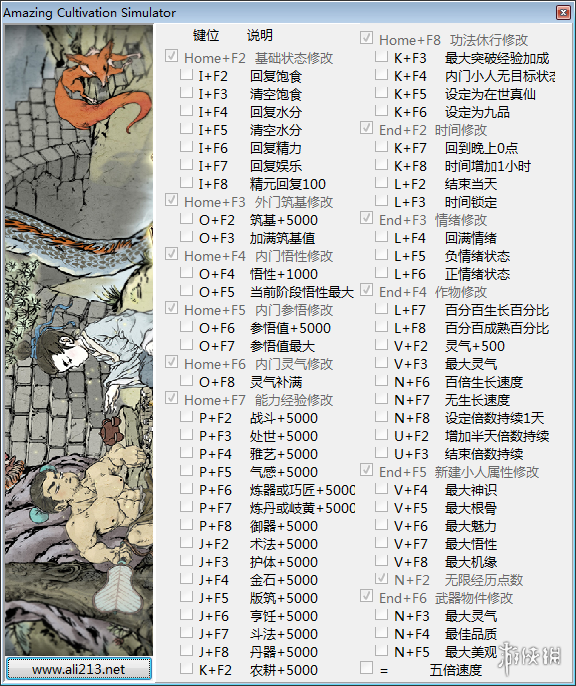 8.功法修行修改:针对小人前几次突破有效,选择小人,进入功法界面开启与修改。