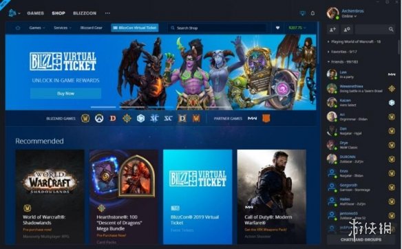 好友列表被放置在战网客户端的右侧,并标示出正在进行游戏的玩家有哪些。商城界面与原版相比变化不大。游戏论坛、客服支持、各电竞项目的入口,均放到了商城按钮旁边,以保证界面简洁。