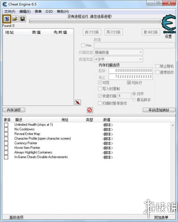 2.启动CE(CE修改器汉化版:http://patch.ali213.net/showpatch/52215.html)