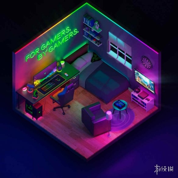 Wallpaper Engine 空间立体灯光房间动态壁纸,一款静态壁纸,在一个空间三面视角的小房间在屏幕中央,房间内的灯光闪烁,喜欢的玩家不要错过下载。