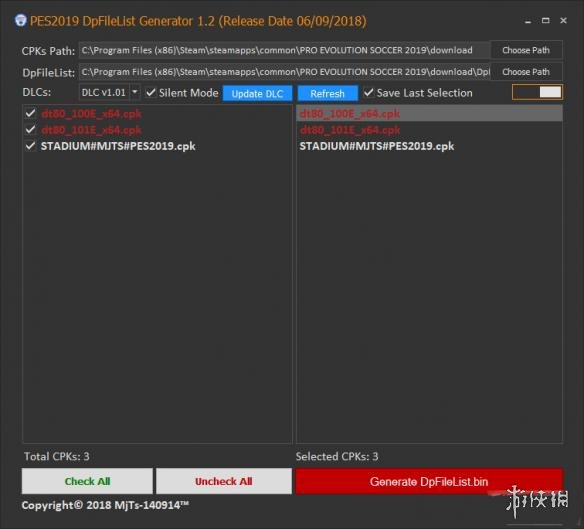 注意事项:设置CPK和DpfileList路径,点击Update DLC,才可选择DLC1.0。