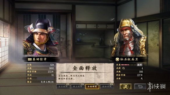 本次《信长之野望:大志 威力加强版》将在原作《信长之野望:大志》的基础上新增许多新的游戏设定,本次便公布了新增的“攻城战”游戏系统情报,从游戏截图来看攻城战将围绕“攻城方针”与“命令”两方面展开,玩家可以考虑使用“强攻”与“水淹”的暴力夺取城池也可以通过“包围”与“谈判”这样的温和方式说服敌人投降,丰富多样的攻城方式将极大的提升了本作的战略性。