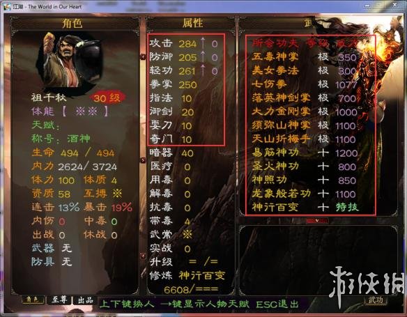 2、自带武功的选项将在日后继续完善,现在一律不计算在最后的结果中,所以为了防止偏差,请将自带武功练满之后再手动输入人物数值(攻防轻功和五系系数)到规划模拟器下方的数值栏中,或者自己算好数值输入即可。