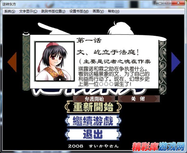 中文名称: 逆转东方(Gyakuten Touhou),繁体中文名称《逆転东方》,游戏类型为冒险游戏,游戏版本为汉化版,逆转裁判东方版,文字冒险+推理探案。和文一起追寻案件的真相吧!