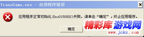 3、玩家运行游戏时如出现类似下图提示“应用程序正常初始化(0xc0150002)失败。请单击“确定”,终止应用程序。”