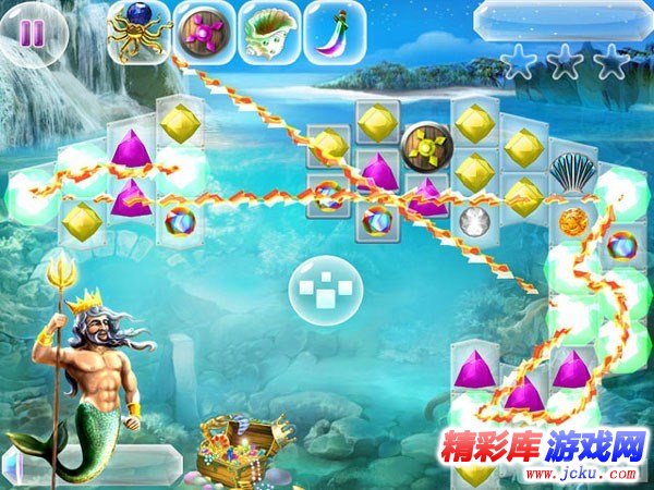 画 面:游戏的画面简洁,色彩也很清淡,浅蓝的海水将海洋的纯净和透彻完美的体现了出来,消除的元素表现的也比较简单,虽然称不上华丽炫目,但玩起来十分流畅自如,有着一种童话色彩。 声 音: 游戏的音乐体现了海洋的背景风格和消除游戏清新淡雅的特质,虽然简单但是配合游戏会让你获得放松感。