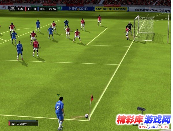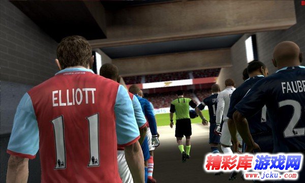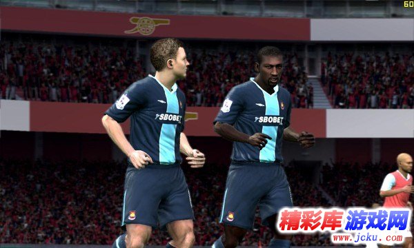 至于说到游戏的画面方面,毕竟PSP上的机能也有限,想要达到家用机或者PC平台上的画面是不太可能的。本作的画面表现算是中规中矩吧,比赛进行中一般球员的脸是一片空白的,只有一些球员特写时才能看清球员的样子,而且球员外貌的贴图,不是十分像,还原度不算高。不过游戏中球员的建模还是不错的,看起来比较圆滑,不会显得棱角分明。而场外的球迷、广告牌等游戏中都有制作到,EA还是蛮用心的。