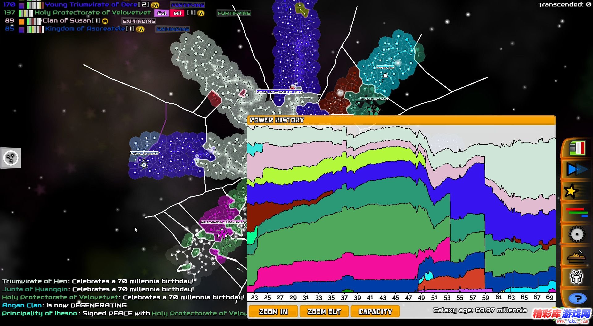 星系模拟器是一款策略模拟游戏。这款游戏将在随机生成的星系中模拟战争、进化、政治、科研、等等多种多样的惊人事件。看着一个个太空帝国陷入权力的斗争。