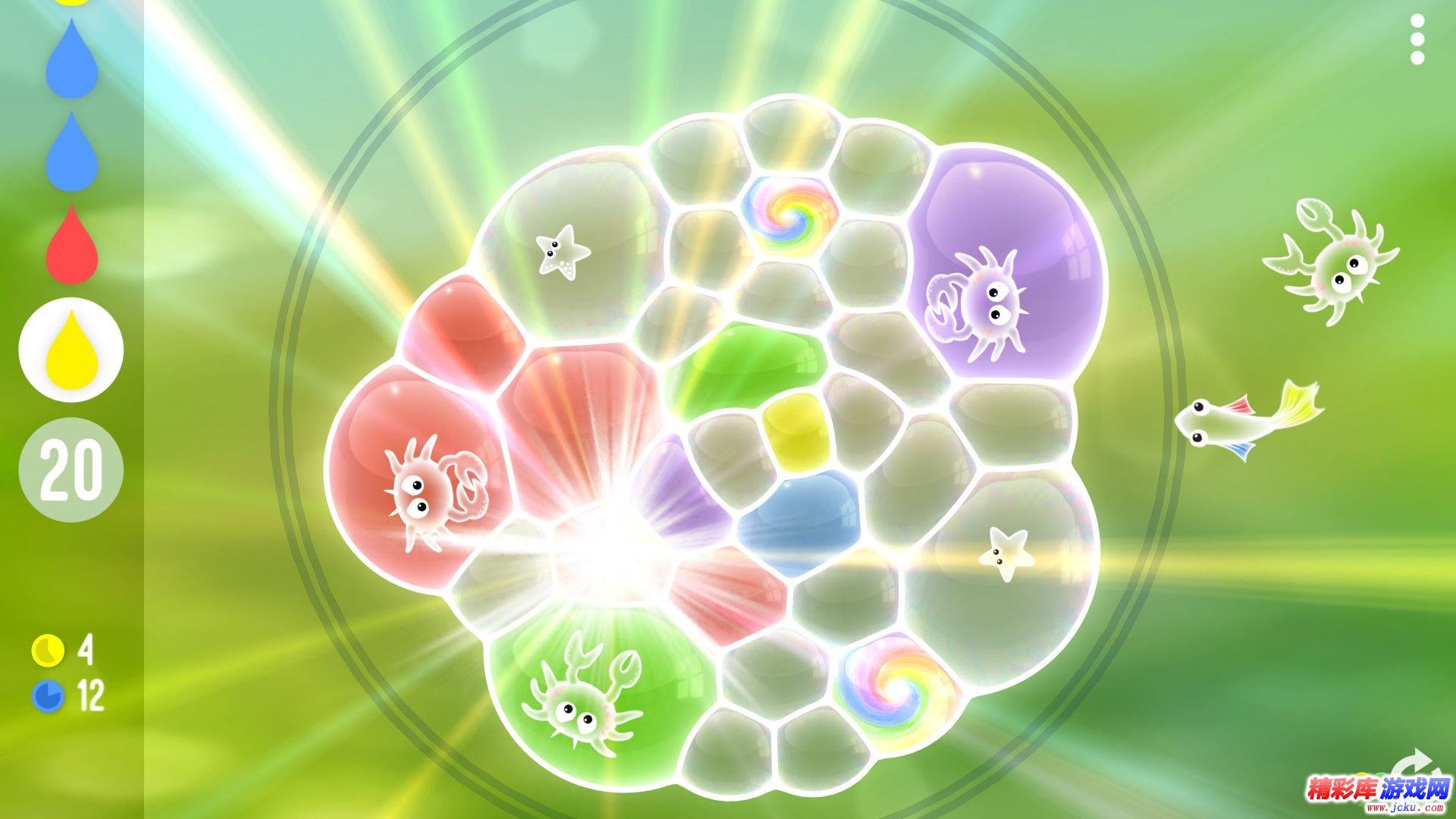 由于其独特的玩法赢得了多个奖项,小气泡将游戏带入了有机世界。利用压力和表面张力的物理原理,用彩色的空气填充气泡,并推动附近的气泡。打破邻居之间的边界,混合颜色创建4或更多的匹配。通过一个类似tetris的队列实时移动,这样可以构建级联链式反应。