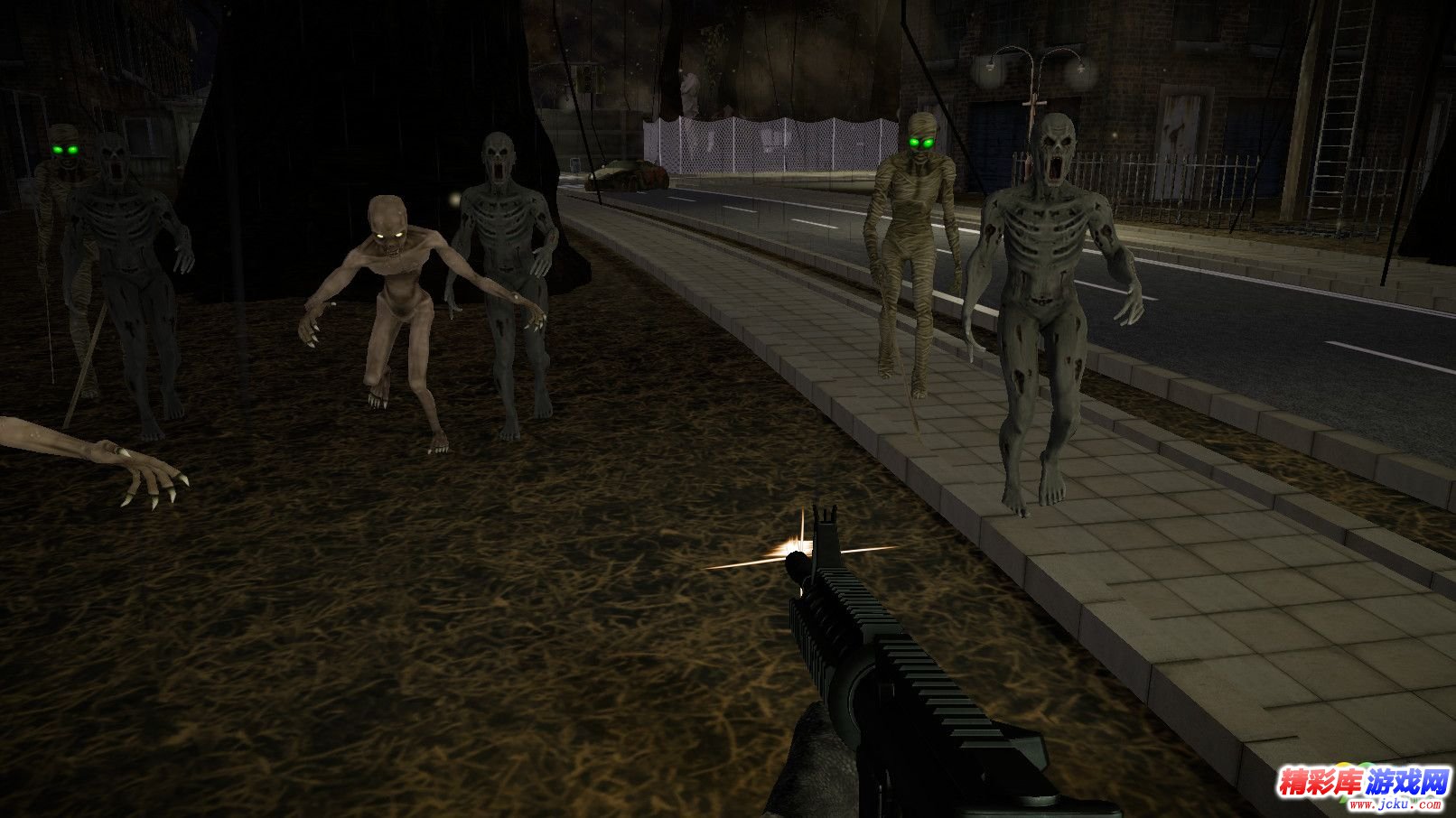 玩家必须杀死各种僵尸,在游戏中的怪物,并保存从怪物绑架警察。 (被绑架的女警是其他警察的妻子)