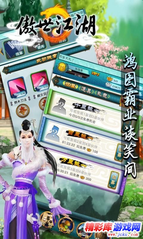 傲世江湖手游是一款以武侠世界为背景的卡牌类安卓手机游戏,游戏中玩家将要穿越到武侠世界中挑战江湖侠客,挑战各大门派,营造自己的江湖名声,号令天下江湖。玩家要通过战斗来获得珍稀的武器和神秘的阵法,让玩家在这个江湖中激情战斗。