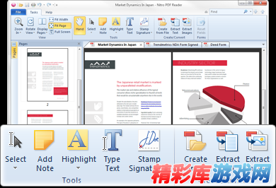 Nitro Reader使用微软Office风格的工具栏界面,非常简单易用,Nitro Reader支持从300多种格式创建PDF。用一种可靠而又通用的文件格式来发布你的作品,让你的客户享受更棒的阅读体验。可以把任何PDF文件转换成纯文本格式,用户可以更方便地重新利用文本的内容。你可以选择输出的文本是否保持段落和页眉、页脚,也可以用字数来定义行宽。