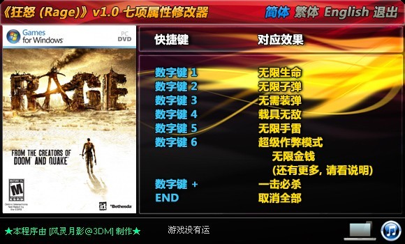 《狂怒》v1.0 3DM七项属性修改器