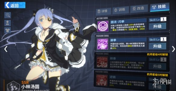 首先,不同于菲比亚和九条绫,小林汤圆的防具专精为轻甲,相对于重甲专精较为疲软的耐久加成,汤圆作为轻甲格斗系机师,专精附加的10%闪避效果配合当前版本中闪避属性为格斗职业带来的高收益,让汤圆在实战中反而更容易应对源源不断的弹幕消耗,使得其原本贫弱的坦度甚至优于菲比亚和九条绫。