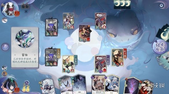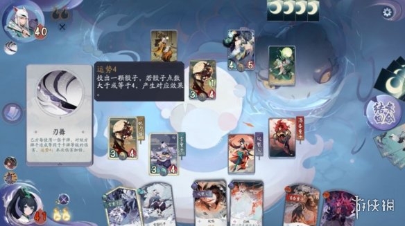 刃舞 技能效果为己方每使用一张卡牌,对敌方牌手造成等同于卡牌等级的伤害,运势4,本回合伤害加倍。在敌方式神的配合下,敌方的被动技能如永动机般,不停的对我方牌手造成伤害。随着牌局的推进,越往后,卡牌等级越高,对我方牌手造成的伤害也越多。这一被动技能也是本关的重点所在。
