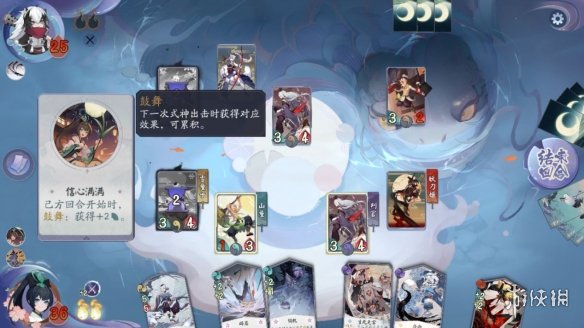 信心满满 形态下的鼓舞效果能够叠加,可以使用战斗牌让式神留在战斗区不触发鼓舞。而式神出击时额外增加的两点力量,也让我们前期有了消灭敌方式神而己方存活的资本。