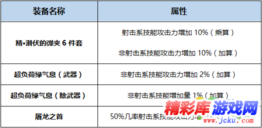 进阶换装思路:20级超负荷+潜伏6+绿气息散件(因屠龙的不稳定触发及占用武器位置,暂不考虑)