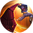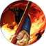 快速旋转手中的火龙棍形成火焰圈,对身前敌人造成持续伤害,最后反手将火圈打出去